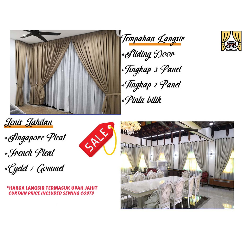 Langsir sliding door i keping upah jahit rm10shj untuk bidang 60inci jika ada tambahan kain lain pd langsir akan ditambah dari harga rm6 rm12 design simple dan lurus shj tempahan akan disertakan sekali dgn tape langsir percuma.